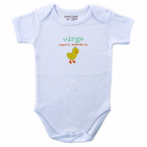 The Detailed Description of Luvable Friends Zodiac Bodysuit Virgo, White, 0-3 MonthsFeatures