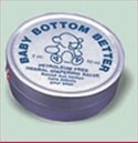 Baby Bottom Better Diaper SalveA soothing petroleum-free diapering salve made with three contact healing herbs and Calendula an anti-fungal flower. This perfume free salve has excellent healing properties and helps keep babys bottom dry by providing a barrier from moisture.Use for urine contact and yeast infected diaper rashes as well as cradle cap. Gentle on your little one and non-toxic too! 50mL tin.