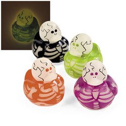 12 Vinyl Glow-In-The-Dark Skeleton Rubber Duckies. Assorted colors. 2" Duckies do not float upright.