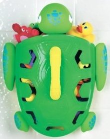 This amphibious friend is a fun pal to have around at bathtime. The novelty of scooping and dumping never gets old for beginner bathers! Kids can use the yellow carry handle to scoop up bath toys, before re-releasing them and starting all over again. And parents will love to have a place to store dripping wet bath toys! The basket's vented roomy interior holds lots of toys. Hanging bracket easily attaches to tub wall with strong adhesive strips (included). Bath toys not included. Measures 14"H x 11.5"W x 5"D.