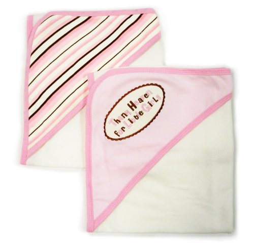 - 2 pack "thank heaven for girls" embroidered/ print interlock hooded towel