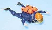 Ten inch battery operated diver that swims in water. Great for bathtubs and swimming pools. Also crawls on land. requires one "AA" battery.
